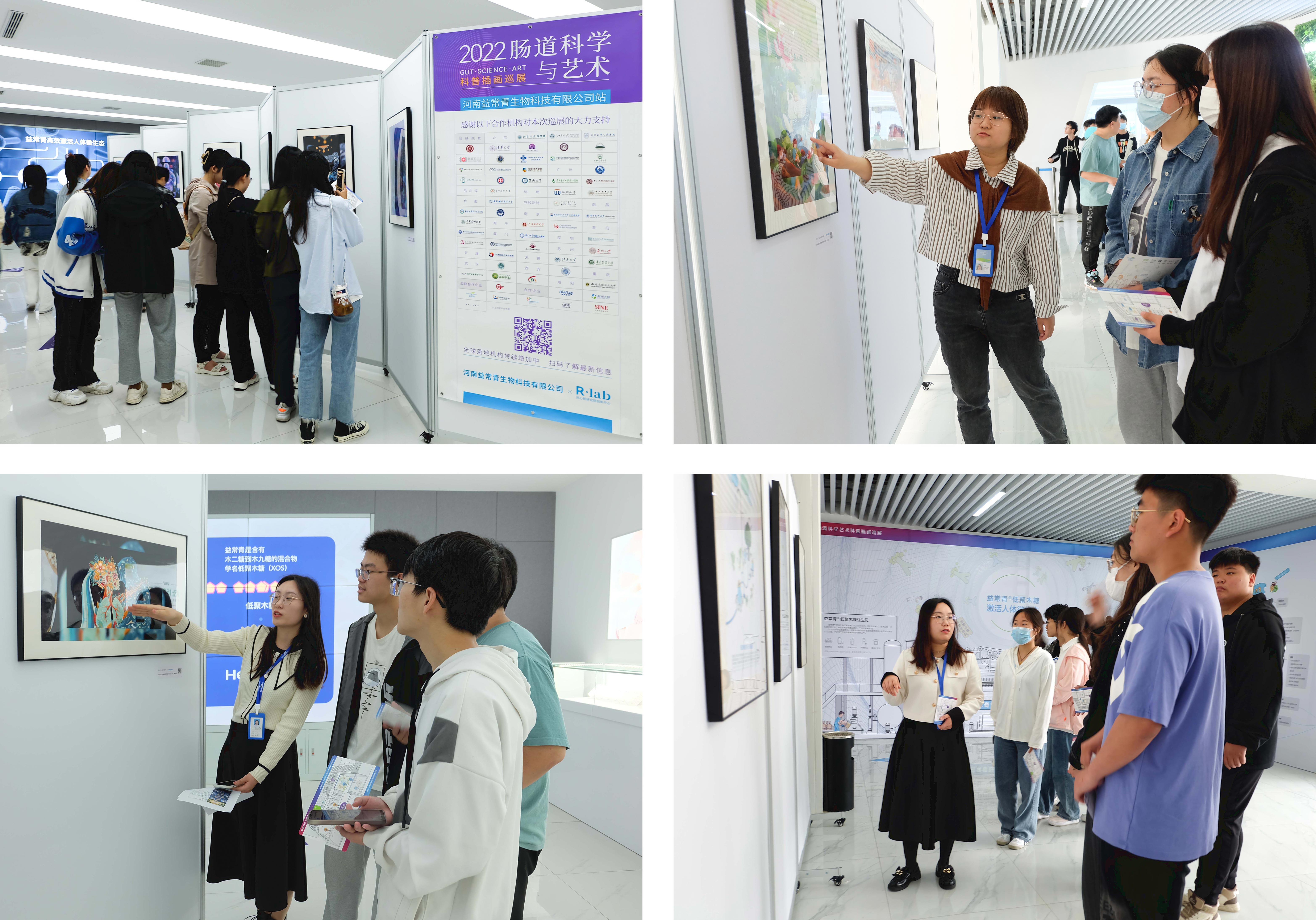 特邀请周口师范学院的大学生前来益常青生物,参观益常青生物展览的(益常青简介区、肠道图文科普区、益生元低聚木糖(XOS)科普区)12幅作品及展览的(肠道科学与艺术插画)40幅作品。本次活动完美收官,让我们一起认识肠道、看懂肠道、更爱肠道!