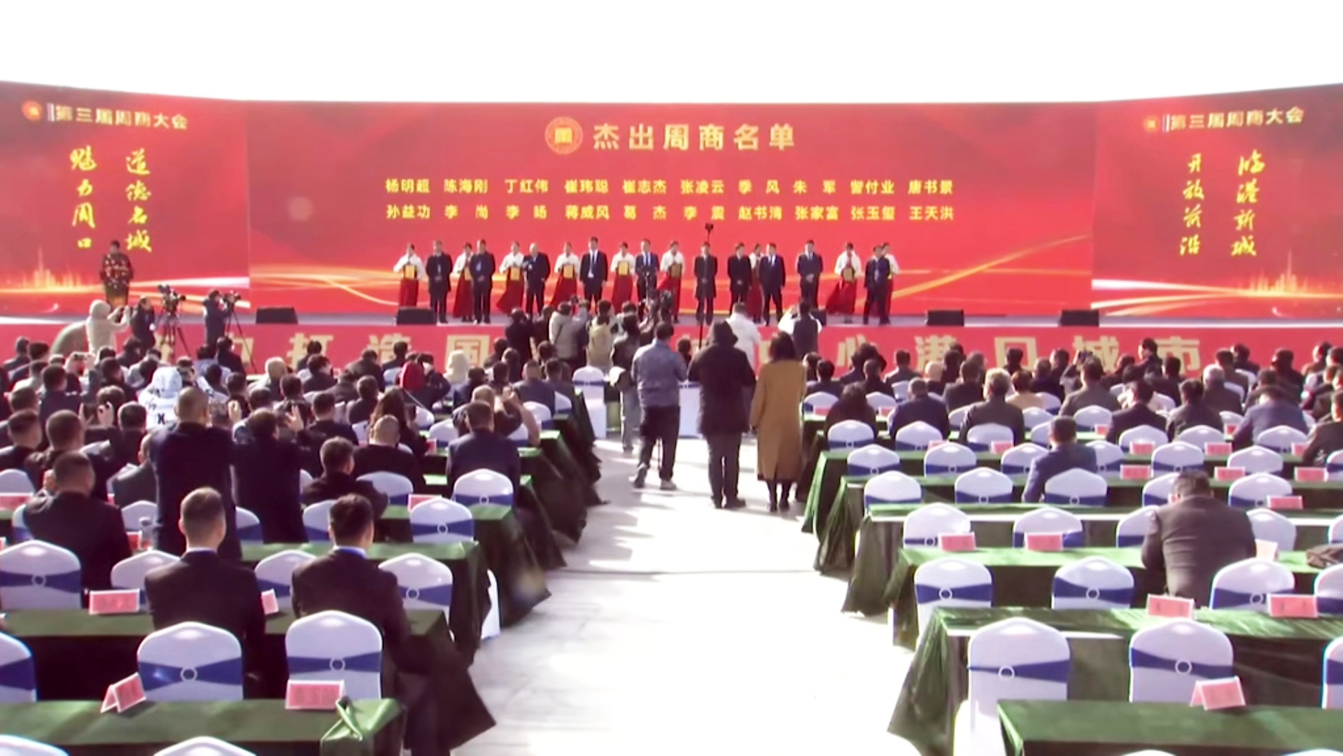 乡情浓浓,共谋发展。为表彰先进、树立典型,在11月16日召开的周口市第三届周商大会上,我市对“优秀商会”“杰出周商”和新聘招商大使颁发奖牌、证书。