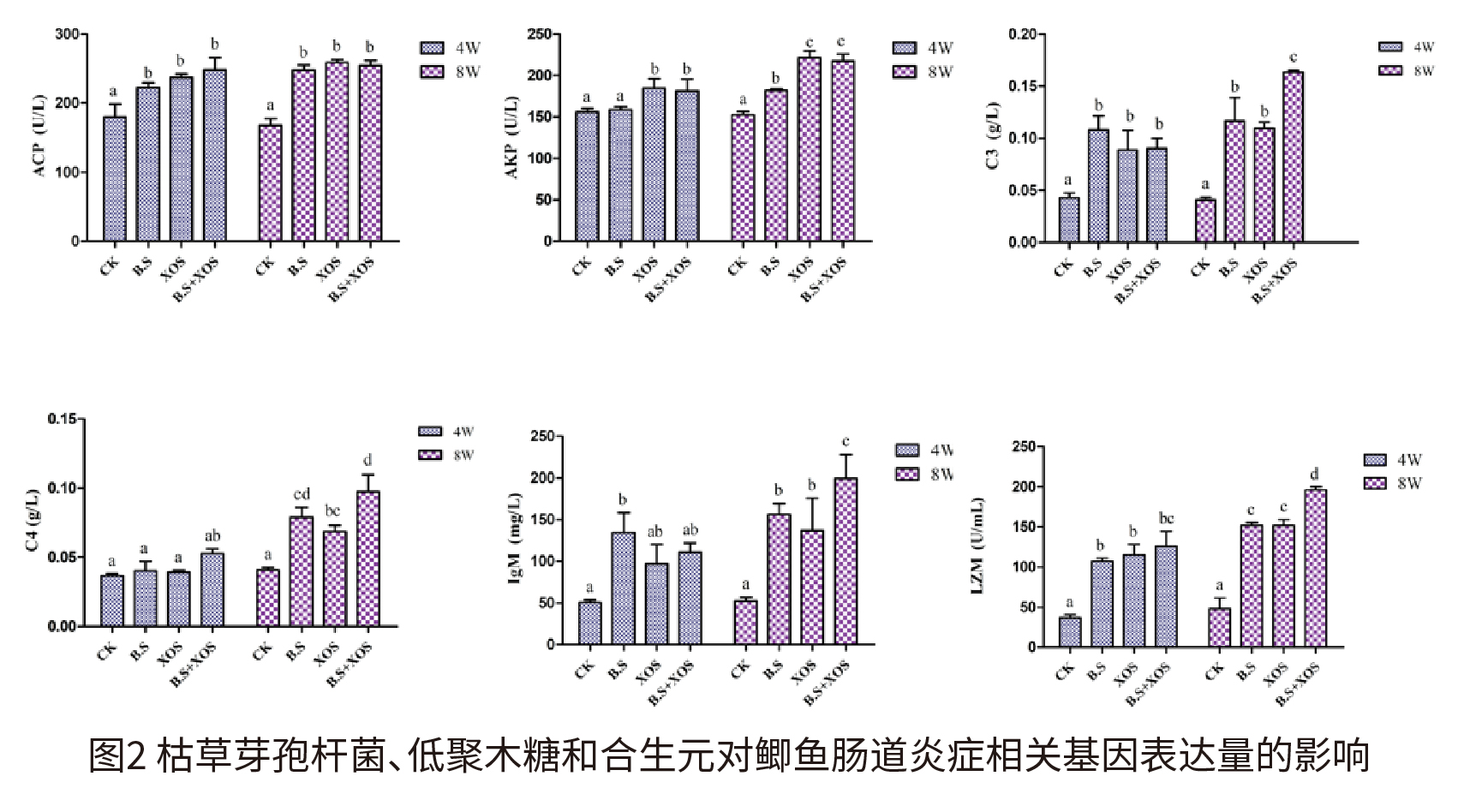 单独或联合添加枯草芽孢杆菌、低聚木糖对鲫鱼肠道健康的影响