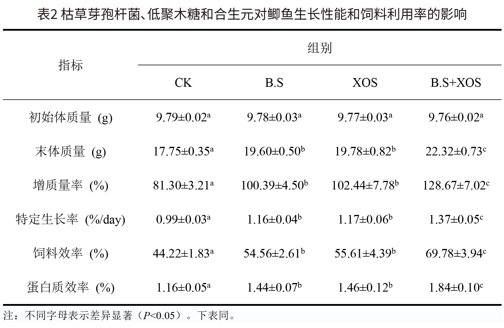 1)枯草芽孢杆菌、低聚木糖和合生元对鲫鱼生长性能的影响