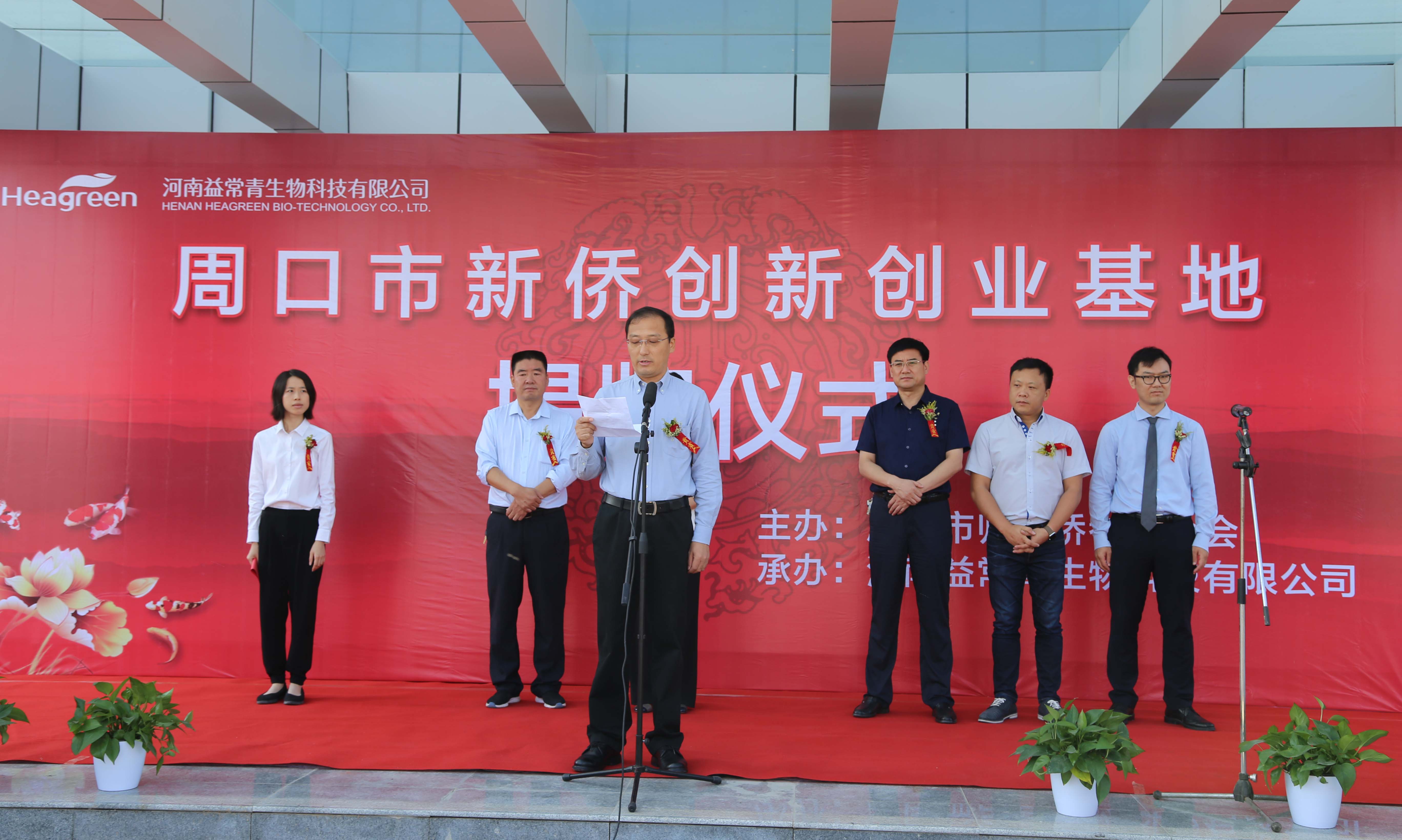 冯连根在讲话中说,建立周口市新侨创新创业基地的揭牌,就是为了引荐更多优秀海外留学人员回国回乡创新创业,为新生代侨商和侨界科技人才提供更好的发展平台。新侨创新创业基地将发挥带动海外高层次人才回国创新创业的引领示范作用,坚持创新、合作、共享、共赢的原则,服务我市经济社会发展,服务广大新侨创新创业实践,激发广大新侨创新潜能和创业活力,不断凝聚侨界创新创业力量,努力将基地打造成创业创新的集聚平台、示范基地。希望益常青生物科技有限公司以这次“新侨创新创业基地”挂牌为契机,坚持创新、合作、共享、共赢的原则,服务我市经济社会发展,服务广大新侨创新创业实践,激发广大新侨创新潜能和创业活力,不断凝聚侨界创新创业力量,努力将基地打造成创业创新的集聚平台、示范基地和知名品牌。