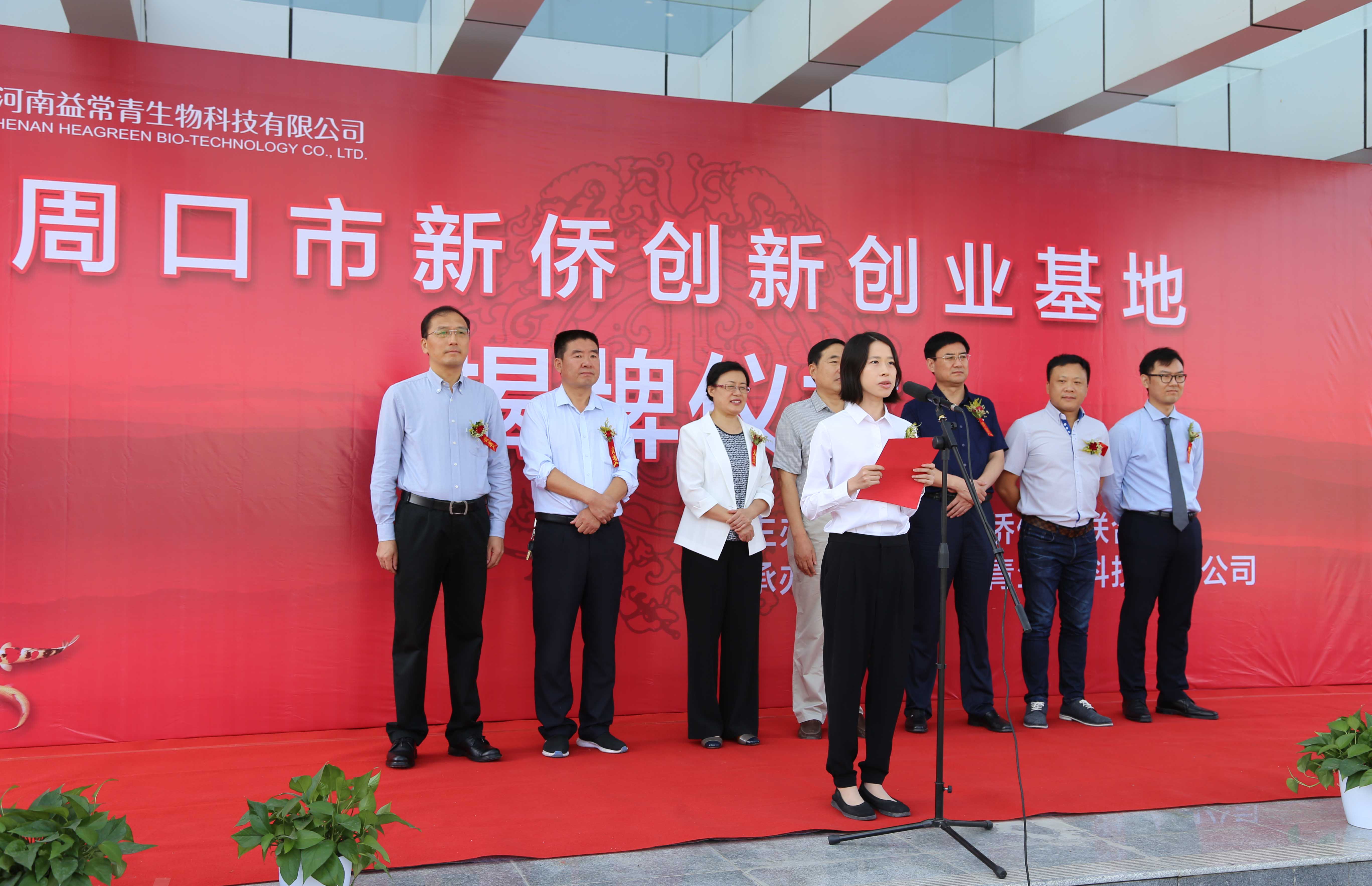 上午9点,基地揭牌仪式在河南益常青生物科技有限公司隆重举行。河南省周口市市委常委、统战部部长方婷出席仪式。周口市工业信息化委员会主任姚卫田,周口市科技局局长赵卫红,周口市侨联主席冯连根,周口市开发区党委书记田林,西班牙华侨、周口市侨商会会长刘光中,留法硕士、河南益常青生物科技有限公司董事长李尚,毕业于新加坡MDIS工商管理专业、“益常青”归国代表李泳珊等参加仪式。![]() |