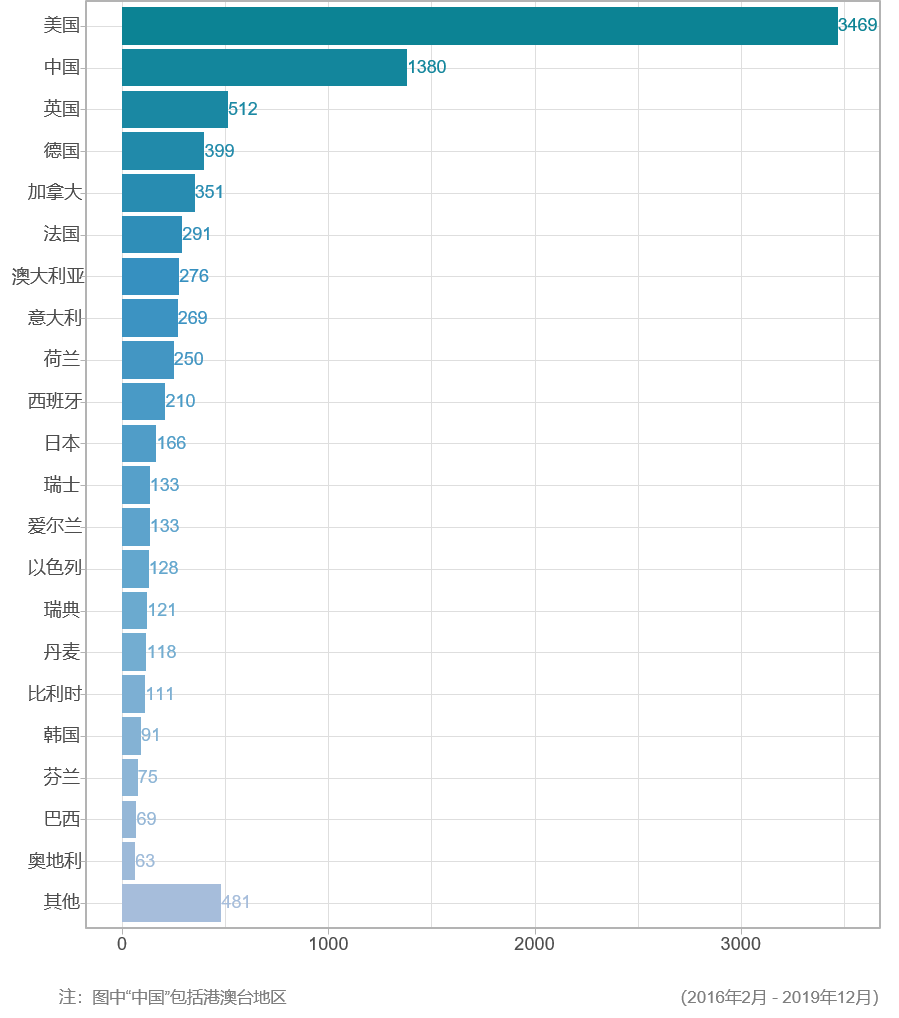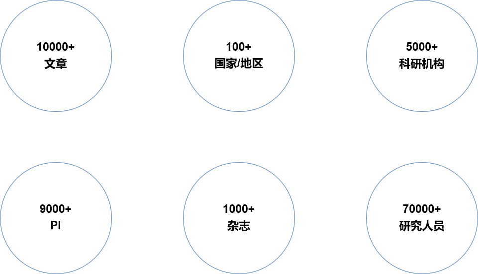 以《热心肠日报》在近 4 年时间里收录并解读的 10000 余篇文献为例,这些研究成果涉及 100 多个国家和地区、5000 多个研究机构、9000 多个课题组(以通讯作者计)以及 70000 多位研究者(图2)。